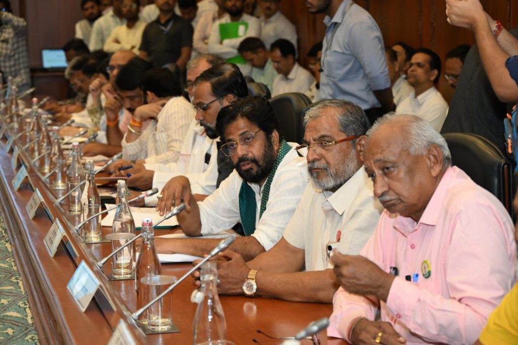सह्याद्री अतिथीगृह येथे शेतकरी कर्जमाफी संदर्भात आंदोलक प्रतिनिधी शिष्टमंडळ सोबत मुख्यमंत्री फडणवीस यांच्या अध्यक्षतेखाली  बैठक झाली. या बैठकीस उपमुख्यमंत्री एकनाथ शिंदे, उपमुख्यमंत्री अजित पवार, महसूल मंत्री चंद्रशेखर बावनकुळे, कृषी मंत्री दत्तात्रय भरणे, जलसंपदा मंत्री गिरीश महाजन, पणन मंत्री जयकुमार रावल, राज्यमंत्री ॲड आशिष जयस्वाल, राज्यमंत्री डॉ पंकज भोयर, मुख्य सचिव राजेश कुमार, शेतकरी आंदोलन शिष्टमंडळातील प्रतिनिधी माजी राज्यमंत्री ओमप्रकाश बच्चू कडू, खासदार राजू शेट्टी, माजी मंत्री महादेव जानकर, वामनराव चटप, रविकांत तुपकर, राजन क्षीरसागर, गिरीश दाभाडकर, अजित नवले यांच्यासह सर्व प्रमुख विविध विभागांचे अपर मुख्य सचिव, प्रधान सचिव,  सचिव आणि आयुक्त, वरिष्ठ अधिकारी उपस्थित होते.